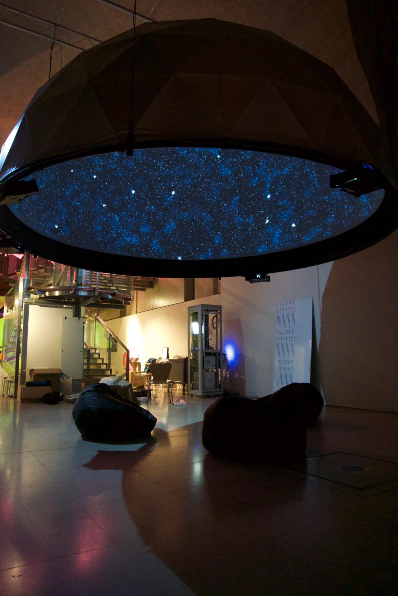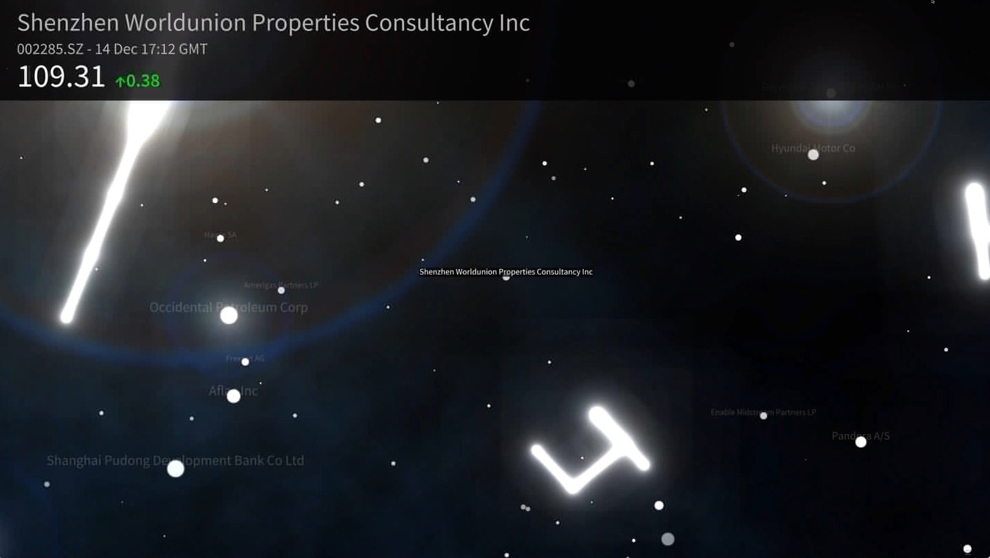 A real-time stock market data driven planetarium conceived and developed by the artists Joshua Portway and Lise Autogena.